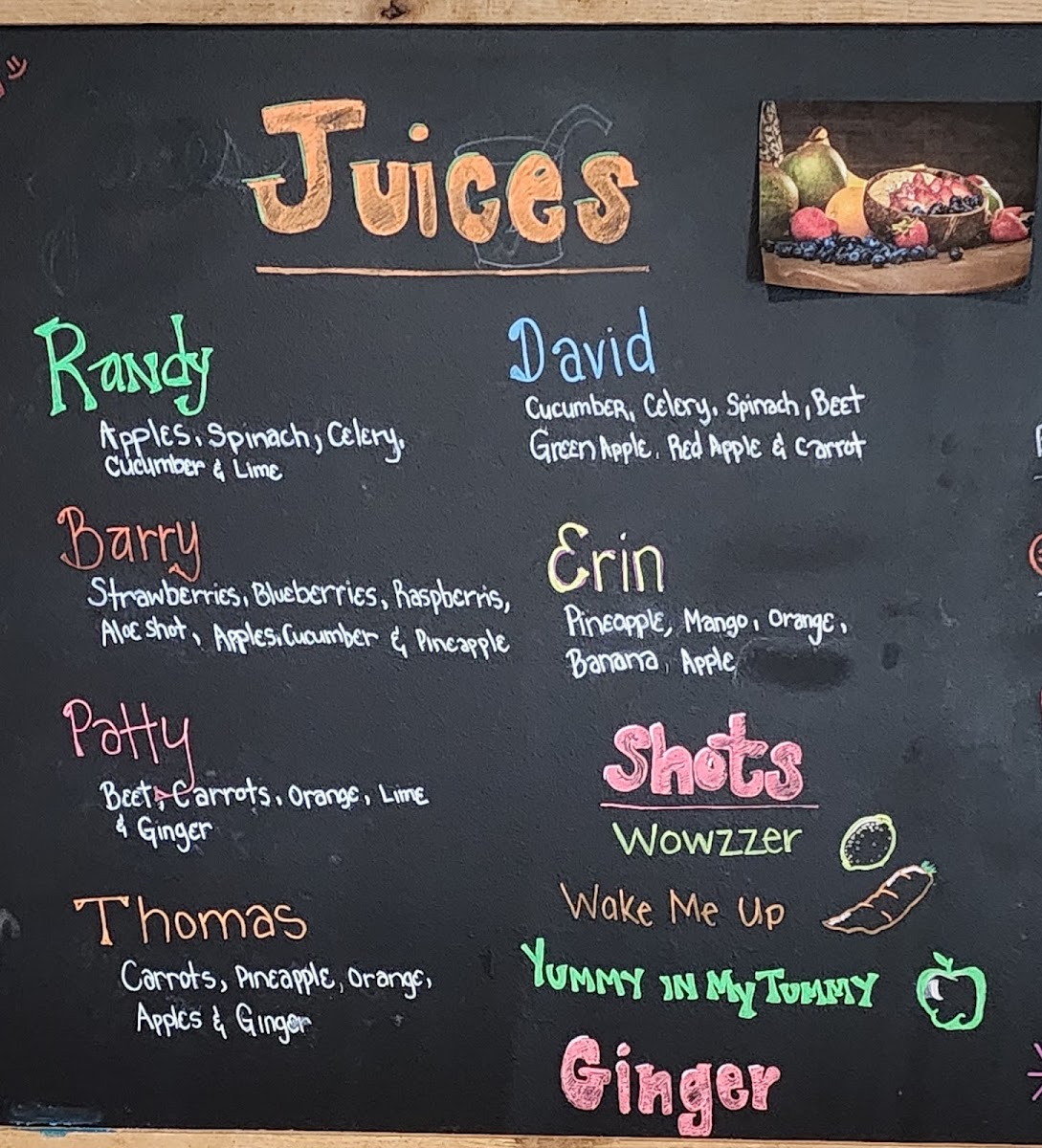 Strawberry, blueberry, raspberry, shot of wild berry aloe, apple, cucumber, and pineapple.